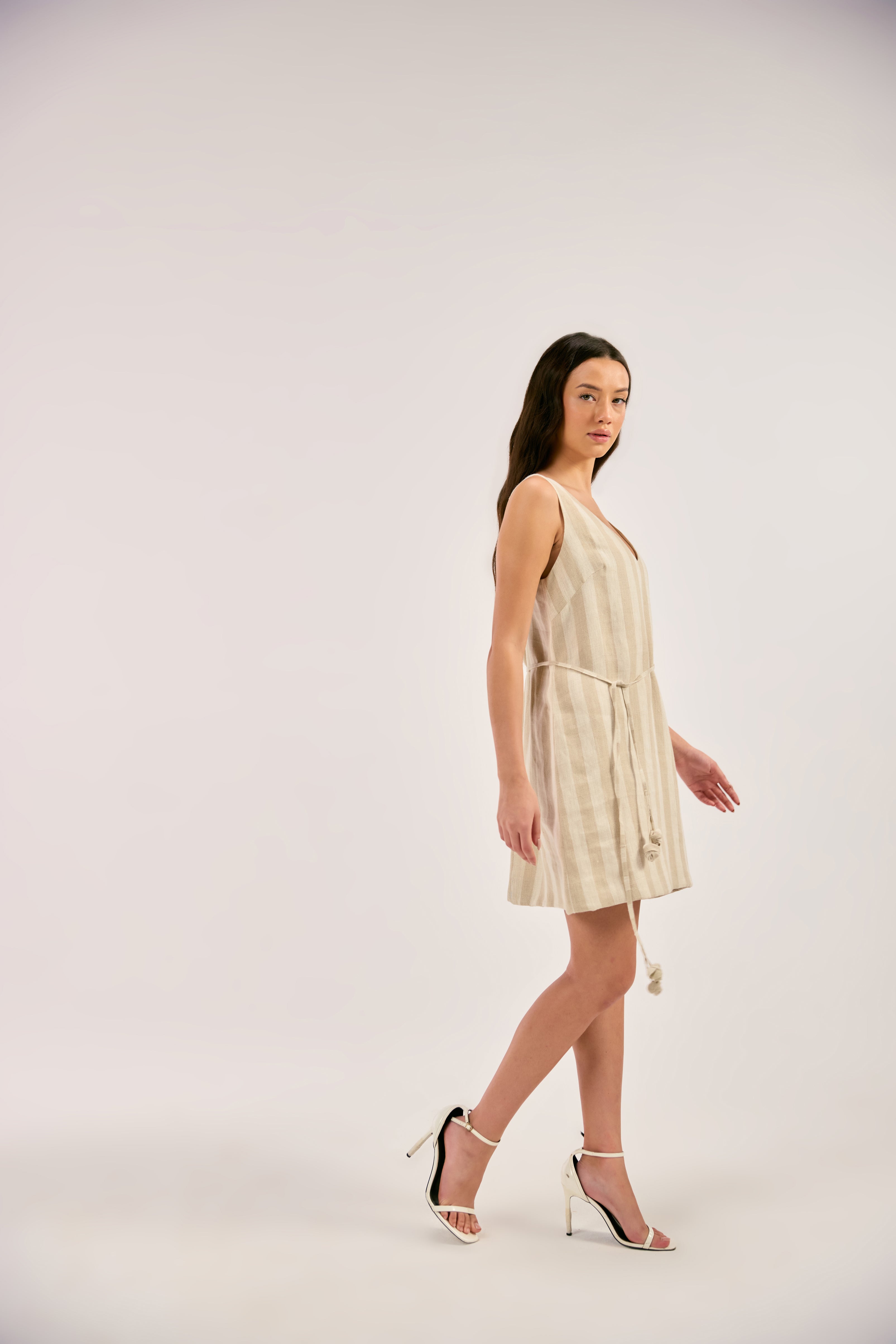 Crafted in 100% pure linen, this easy V-neck dress is designed for effortless comfort and everyday elegance.Thoughtfully finished with functional pockets and a detachable belt that doubles as a subtle trim detail.
